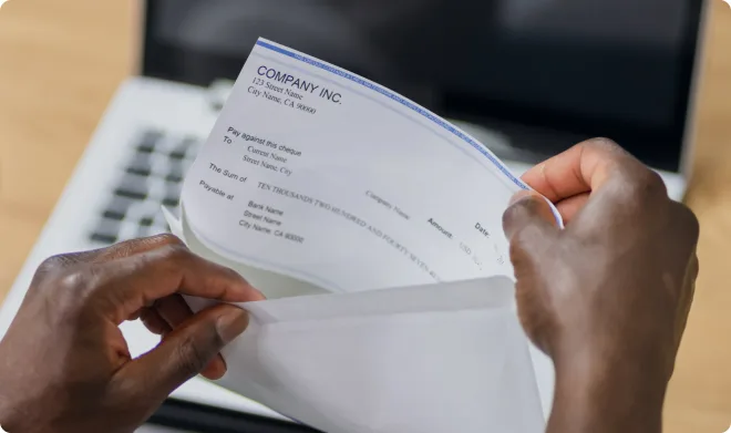 Deposit Instructions – Cut along the dotted line, endorse the back of the check, and then fold it in half before depositing.